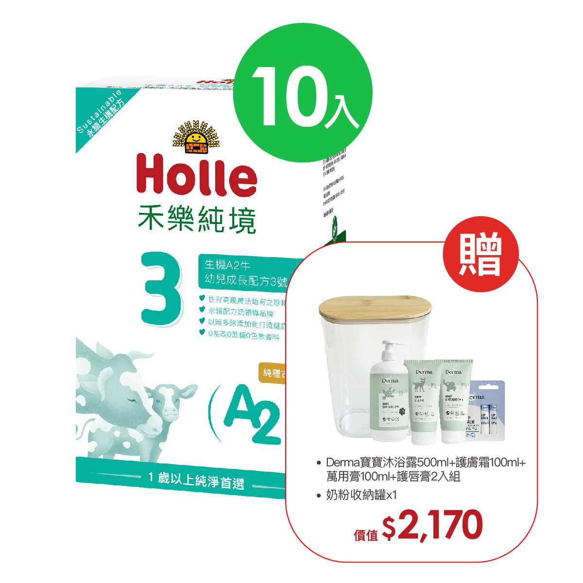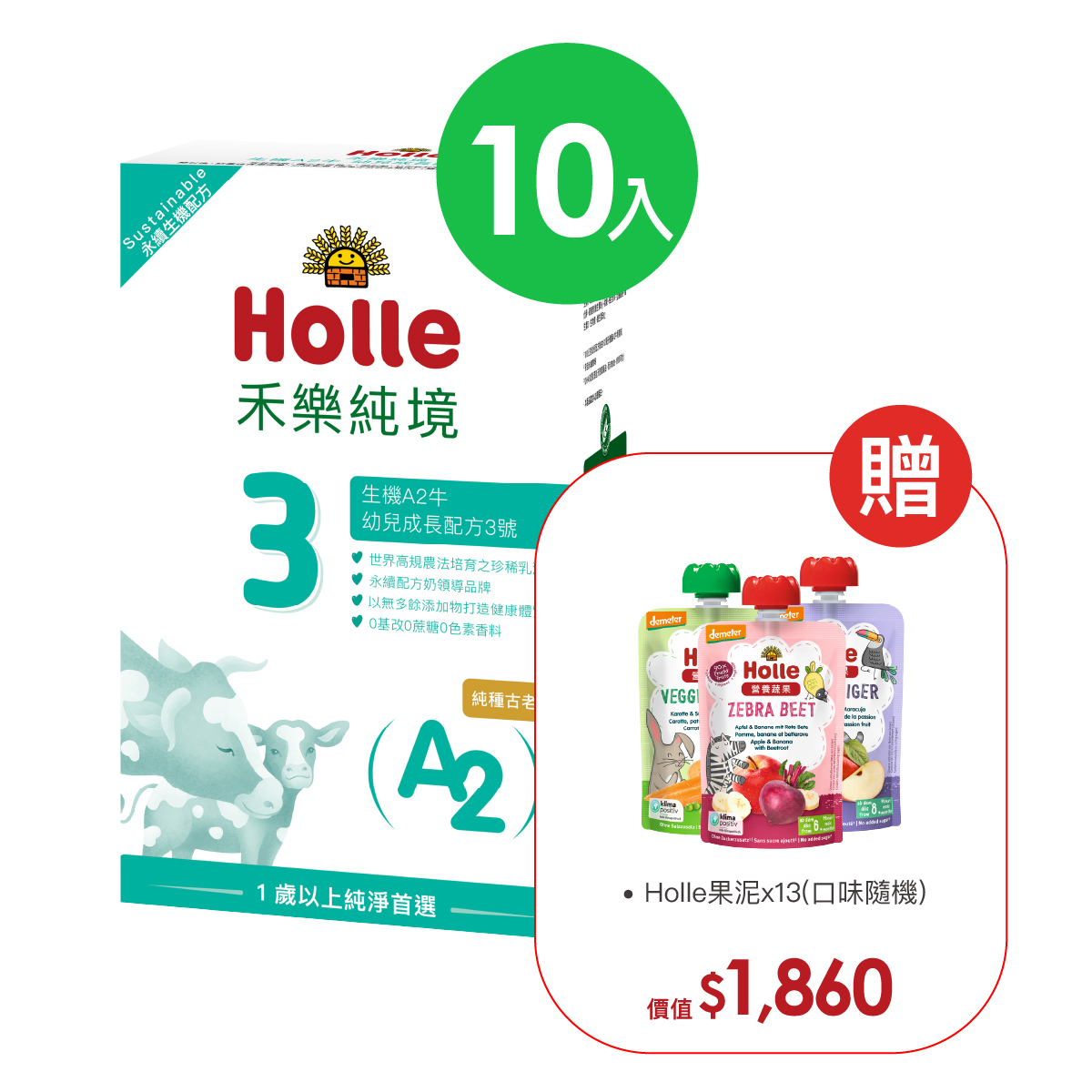 12月底到貨【Holle禾樂純境】生機A2牛3號(效期至2026/01)10入組贈果泥或Derma超值好禮