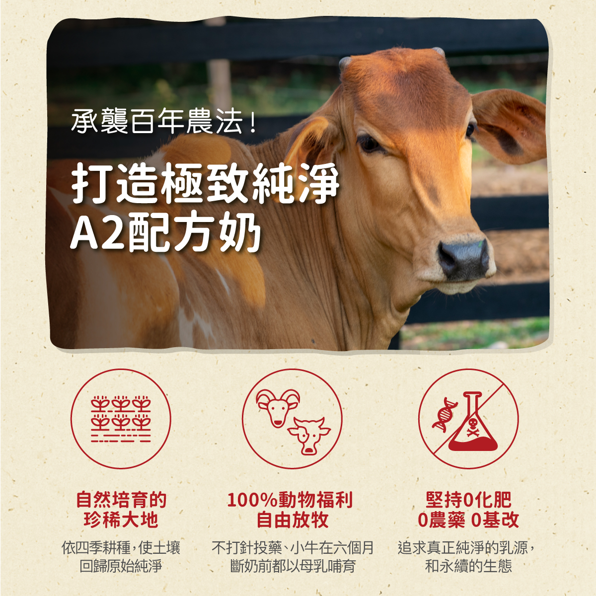 .100%動物福利,不打針投藥、不切除牛羊角。