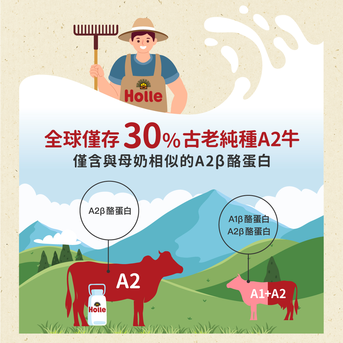 .僅含與母奶相似A2β酪蛋白,吸收好,照顧寶寶易敏消化道