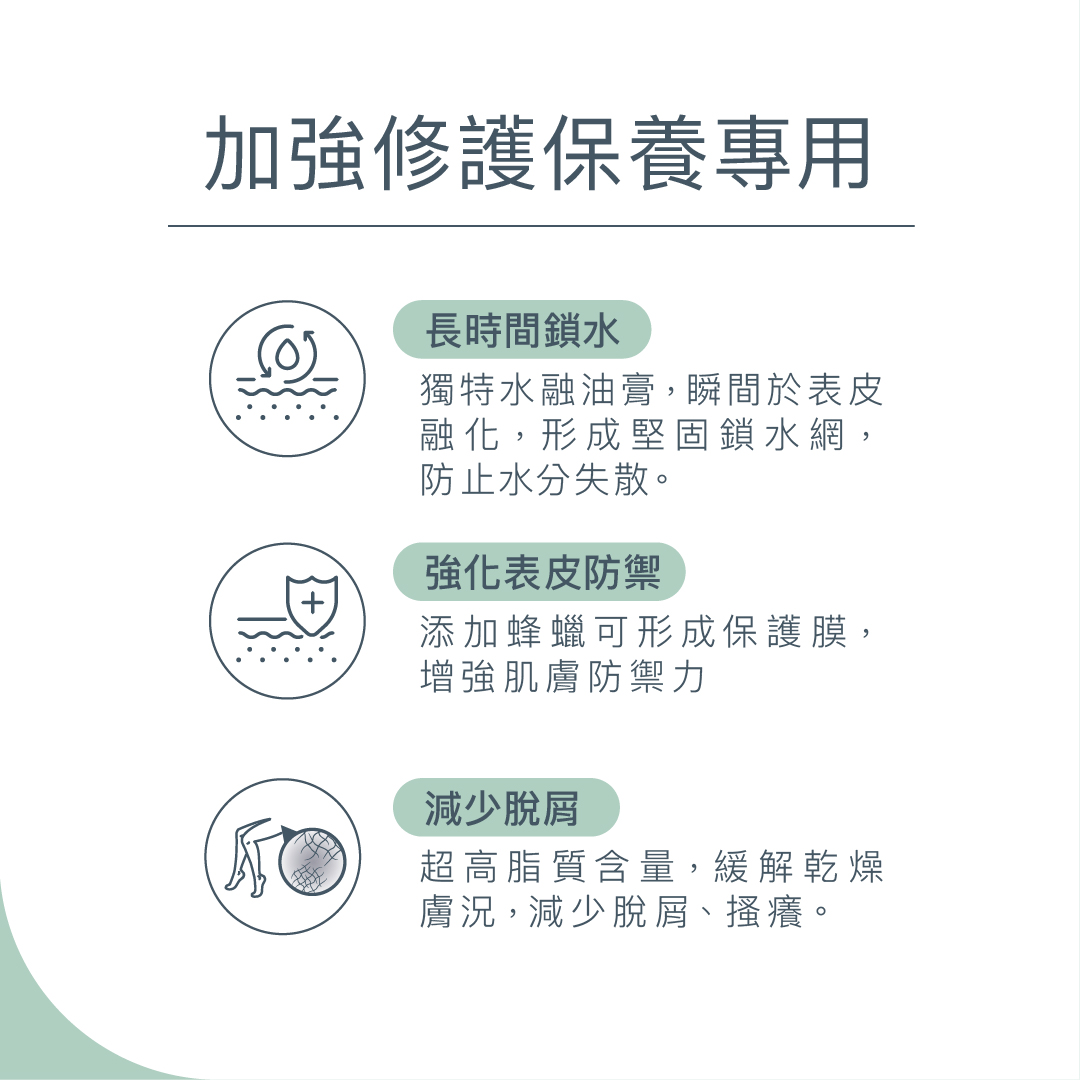【商品資訊】規格:200ml貨源:公司貨產地:丹麥保存期限:42個月用途:修護肌膚乾燥不適,滋潤鎖水用法:取適量塗抹於肌膚,按摩至吸收即可成分:Paraffinum Liquidum, Cera Alba, Aqua, Cetyl Palmitate, PEG-40 Hydrogenated Castor Oil