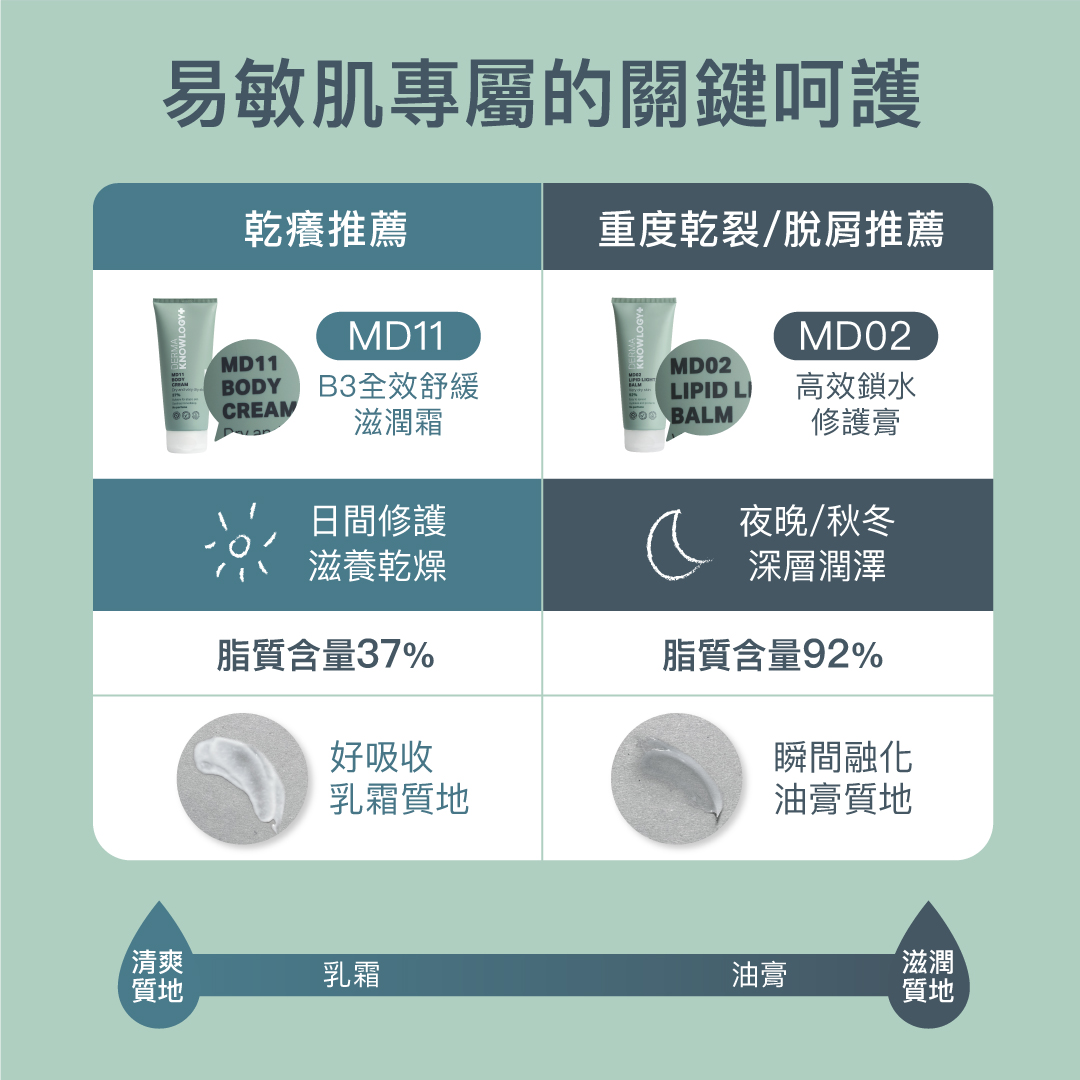 組合內含:MD11 B3全效舒緩滋潤霜25ml + MD02 高效鎖水修護膏25ml